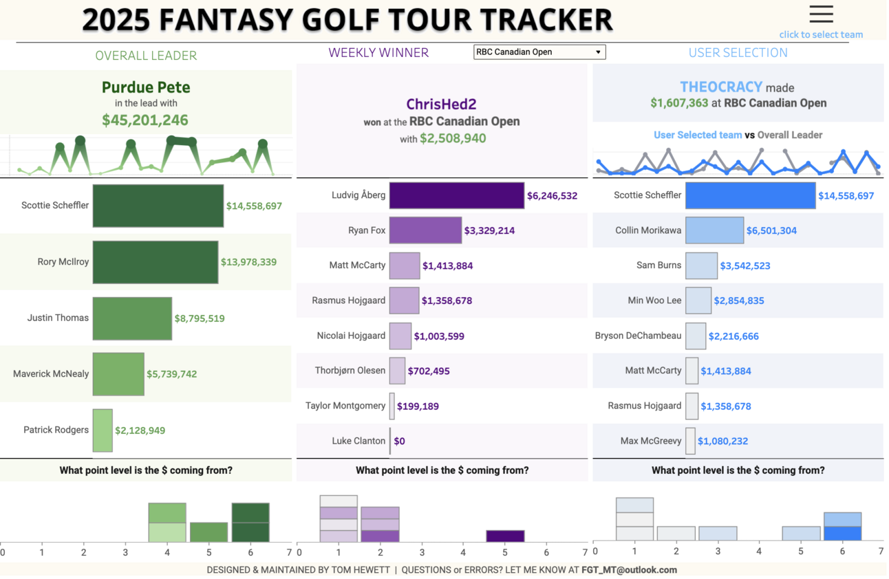 Meanwhile, Purdue Pete maintains the overall lead over Honsie Hilmore about $500k as we head into US Open week.